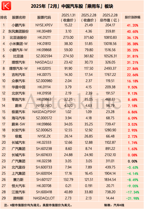 快速跟上市场节奏、并全力发展新能源的小鹏汽车、比亚迪等部分整车上市公司,也在AI“上车”的热潮中,收获了泼天的富贵和流量,再加上技术创新和市场扩张,股价逆势上涨,并带动乘用车板块2月股价平均大涨10.92%。