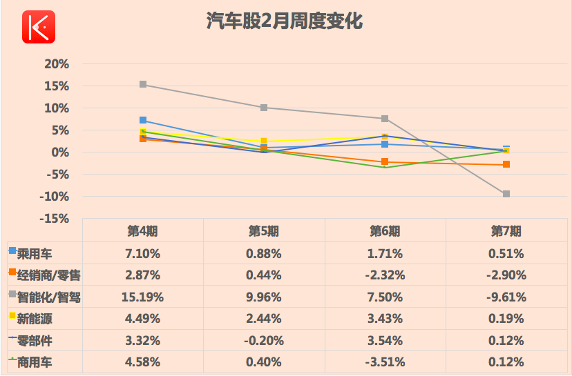 从2月汽车股在资本市场的表现来看,智能化与新能源蓬勃发展,是行业未来的发展方向;传统车企与部分板块在转型压力与市场困境下艰难前行。